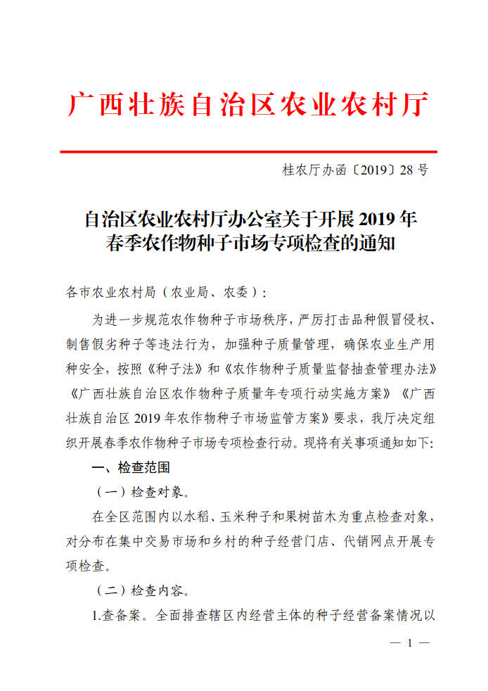 廣西2019年春季農(nóng)作物種子市場檢查專項行動通知