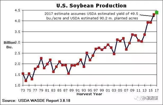 【圖1】1973-2017年美國大豆總產(chǎn)量