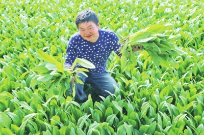 今年,雙豐鎮(zhèn)對從山東壽光引進的菠菜、油白菜、芹菜,韭菜等綠葉蔬菜,采取綜合生物防蟲技術,產(chǎn)品經(jīng)檢測達到綠色無公害有機標準,一上市就成了搶手貨,每公斤綠葉蔬菜比同類多賣1-2元錢。 杜炳勛攝