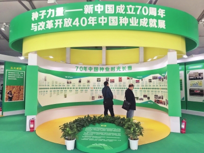 與會者參觀“新中國成立70周年與改革開放40年中國種業(yè)成就展”。本報記者祖祎祎攝