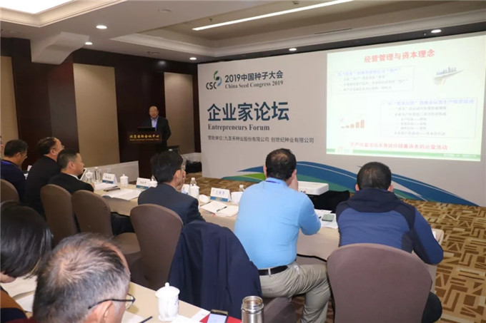 在企業(yè)家論壇現(xiàn)場、九圣禾種業(yè)有限公司總裁胡保民、隆平高科常務(wù)副總裁彭光劍、河南技豐種業(yè)集團有限公司董事長李繼軍等企業(yè)負責人就種業(yè)發(fā)展與資本理論、創(chuàng)新發(fā)展、職業(yè)經(jīng)理人的激情與夢想等內(nèi)容,向與會人員進行了分享。