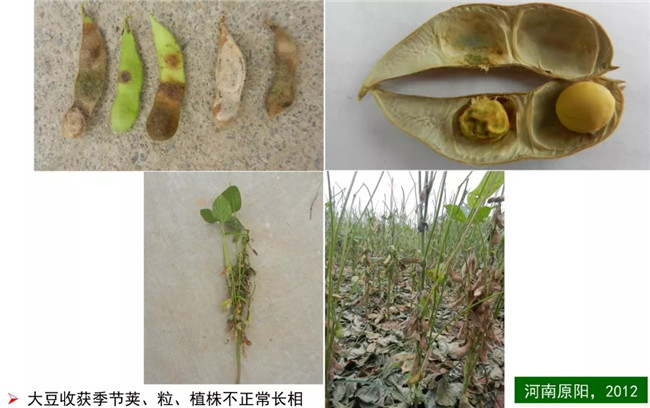 2014年山東省嘉祥縣大豆發(fā)生癥青現(xiàn)象,每畝產(chǎn)量僅有200-300斤;