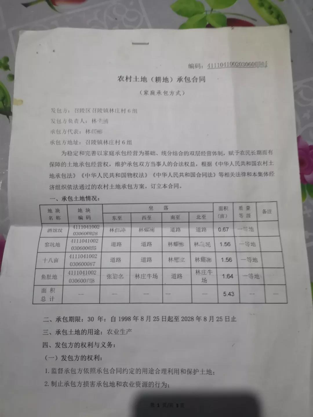 在林莊村,記者見到了村民提供的2016年由漯河市召陵區(qū)人民政府頒發(fā)的農(nóng)村土地承包經(jīng)營權(quán)證,以及農(nóng)村土地承包合同,上面寫著承包期限30年,自1998年8月25日至2028年8月25日;承包土地用途是用于農(nóng)業(yè)生產(chǎn)。“這次推的麥田都是一等地,對村里來說,都是好地,是村民耕種的基本農(nóng)田。”林紅彬說。