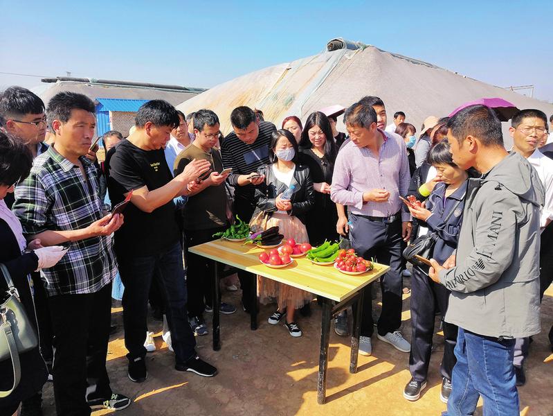 參會(huì)人員在乾縣綠之港農(nóng)業(yè)有限公司品嘗半地下日光溫室大棚生產(chǎn)出的優(yōu)質(zhì)農(nóng)產(chǎn)品
