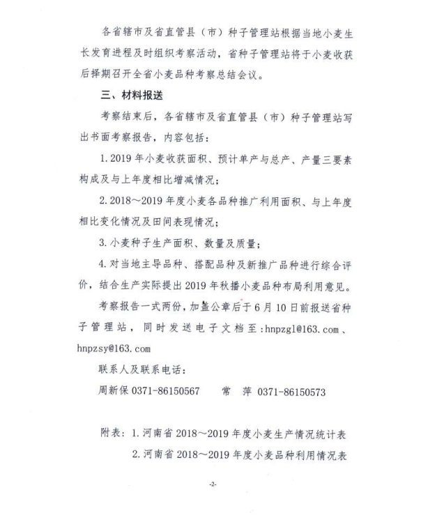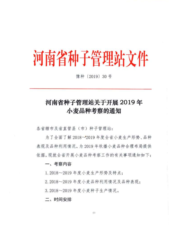 河南省種子管理站關(guān)于開展2019年小麥品種考察的通知