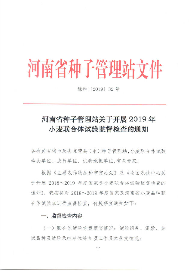 河南開展2019年小麥聯(lián)合體試驗監(jiān)督檢查通知