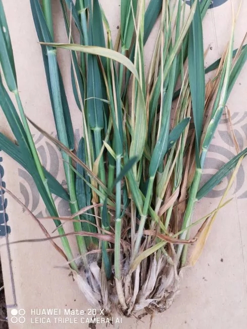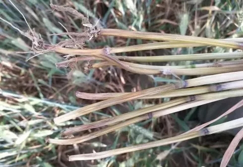 下邊是小麥根腐和莖基腐最近發(fā)病的照片,其中有朋友發(fā)來的,也有我在曲周小麥育種田和生產田拍攝的。這些圖片中,有根腐和莖基腐同時發(fā)生的癥狀,所以鑒別起來不是太準確,但防治應該是差不多同樣的方法。