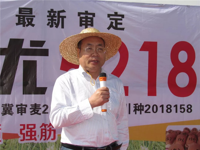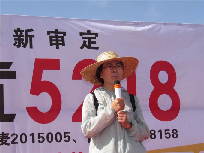 在觀摩現(xiàn)場,河北省石家莊市藁城區(qū)農(nóng)科所副所長楊海川對藁優(yōu)5218的品種選育及示范情況作了簡單介紹。