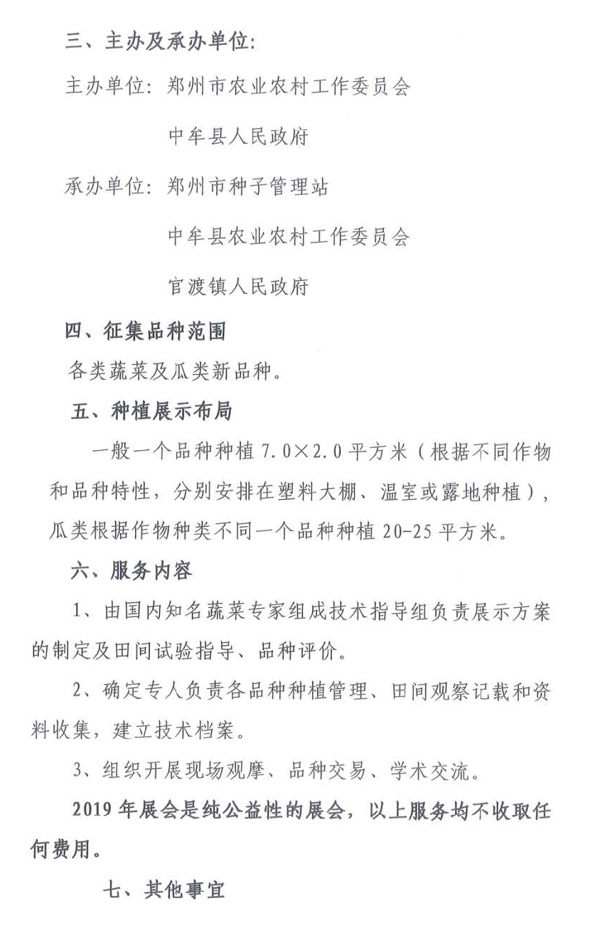 2019年鄭州市蔬菜新品種試驗示范展示品種征集函!10月22日上午開幕