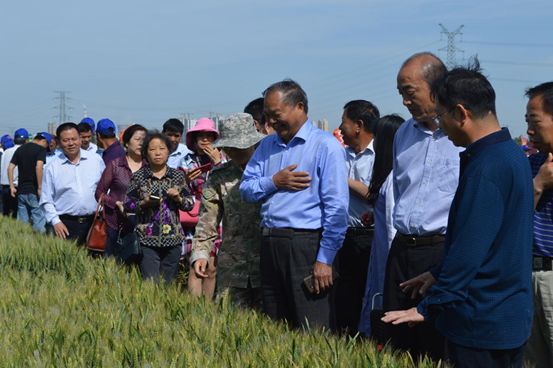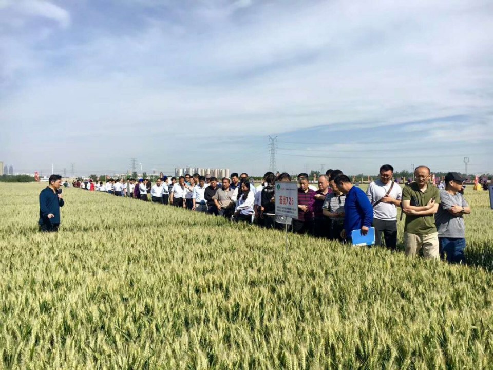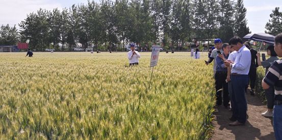 當(dāng)前正是小麥生長(zhǎng)的關(guān)鍵時(shí)期,五月的黃淮大地,處處生機(jī)盎然,一塊塊麥田猶如綠色的地毯鋪在大地上,預(yù)示著有一個(gè)豐收年的到來。5月20日上午,省站領(lǐng)導(dǎo)、專家、企業(yè)、經(jīng)銷商和農(nóng)戶等共同參觀考察了安徽省小麥新品種集中展示基地(宿州點(diǎn)),華成種業(yè)農(nóng)科院副院長(zhǎng)劉飛匯報(bào)了2018-2019年度安徽省小麥新品種集中展示展示試驗(yàn)情況,荃銀高科種業(yè)小麥公司總經(jīng)理沙垠、華成種業(yè)農(nóng)科院院長(zhǎng)劉躍南和新世紀(jì)農(nóng)業(yè)營(yíng)銷總監(jiān)胡易冰分別介紹了在展示基地中公司的新品種展示情況。