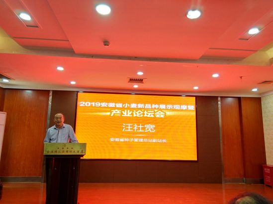 2019年5月19-20日,由安徽省種子協(xié)會(huì)、安徽省種子協(xié)會(huì)植物新品種保護(hù)分會(huì)主辦,安徽荃銀高科種業(yè)股份有限公司、安徽華成種業(yè)股份有限公司、安徽新世紀(jì)農(nóng)業(yè)有限公司承辦的,“安徽省2019小麥新品種田間展示觀摩暨產(chǎn)業(yè)論壇會(huì)”在宿州市隆重舉行,中國(guó)種子協(xié)會(huì)副會(huì)長(zhǎng)馬淑萍親臨大會(huì)指導(dǎo)并對(duì)論壇會(huì)的成功舉辦表示熱烈的祝賀,安徽省種子管理總站副站長(zhǎng)汪社寬、全國(guó)農(nóng)技推廣中心區(qū)試處主任郭利磊、安徽農(nóng)業(yè)大學(xué)丁克堅(jiān)教授、安徽省農(nóng)科院甘斌杰研究員等相關(guān)領(lǐng)導(dǎo)、專家出席會(huì)議并作精彩報(bào)告,來自安徽、河南、山東、江蘇各縣種子經(jīng)銷商及安徽省種子協(xié)會(huì)理事單位共計(jì)140余人參加此次會(huì)議,共觀小麥最新成果,共論小麥育種新方向,共探小麥未來新發(fā)展。