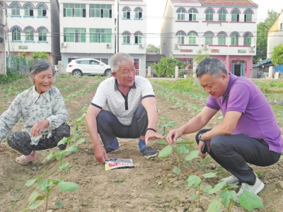在湖北省孝感市云夢縣沙河鄉(xiāng)湖田村,81歲的原黨支部副書記吳金光(左)種植的國欣農村技術服務總會贈送的