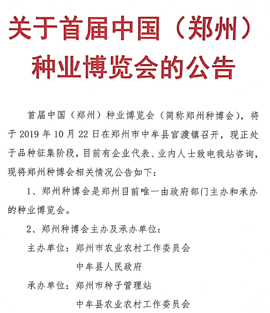 關(guān)于首屆中國(鄭州)種業(yè)博覽會(huì)的公告