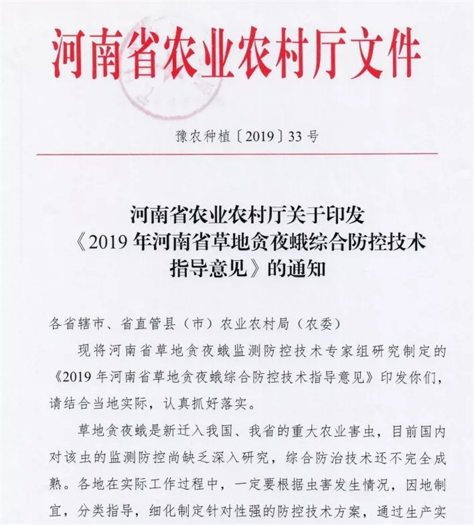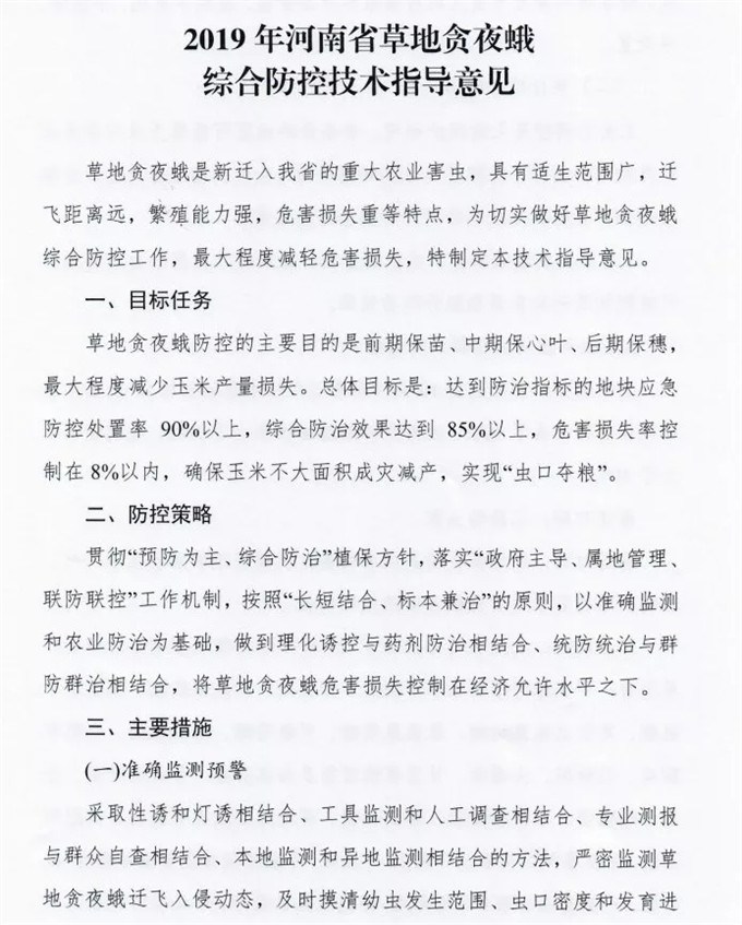 2019年河南省草地貪夜蛾綜合防控技術指導意見