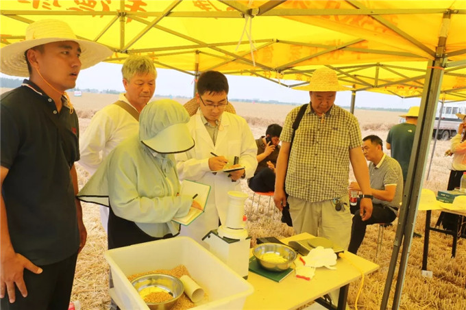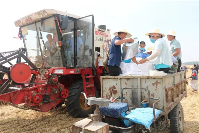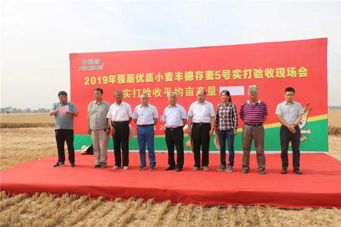 6月5日,中原大地,驕陽(yáng)似火。在永城市侯嶺鄉(xiāng)張井村一塊麥田里,2019年強(qiáng)筋優(yōu)質(zhì)小麥豐德存麥5號(hào)實(shí)打驗(yàn)收會(huì)正在這里舉行。
