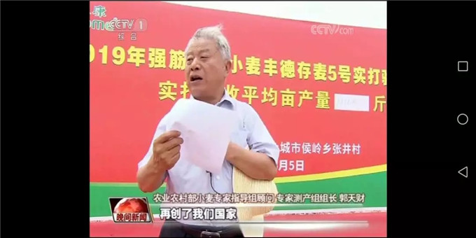 6月9日,CCTV-1《晚間新聞》以《全國(guó)麥?zhǔn)者M(jìn)度多半,優(yōu)質(zhì)小麥創(chuàng)高產(chǎn)》為題,報(bào)道了我國(guó)當(dāng)前的麥?zhǔn)者M(jìn)度,并對(duì)小麥大省河南的優(yōu)質(zhì)強(qiáng)筋小麥的搶眼表現(xiàn)進(jìn)行了重點(diǎn)報(bào)道。優(yōu)質(zhì)強(qiáng)筋小麥“豐德存麥5號(hào)”,平均畝產(chǎn)778.9公斤,再創(chuàng)大面積創(chuàng)高產(chǎn)新記錄,且品質(zhì)達(dá)到國(guó)家一級(jí)優(yōu)質(zhì)強(qiáng)筋標(biāo)準(zhǔn),解決了高產(chǎn)不優(yōu)質(zhì)優(yōu)質(zhì)不高產(chǎn)的矛盾。