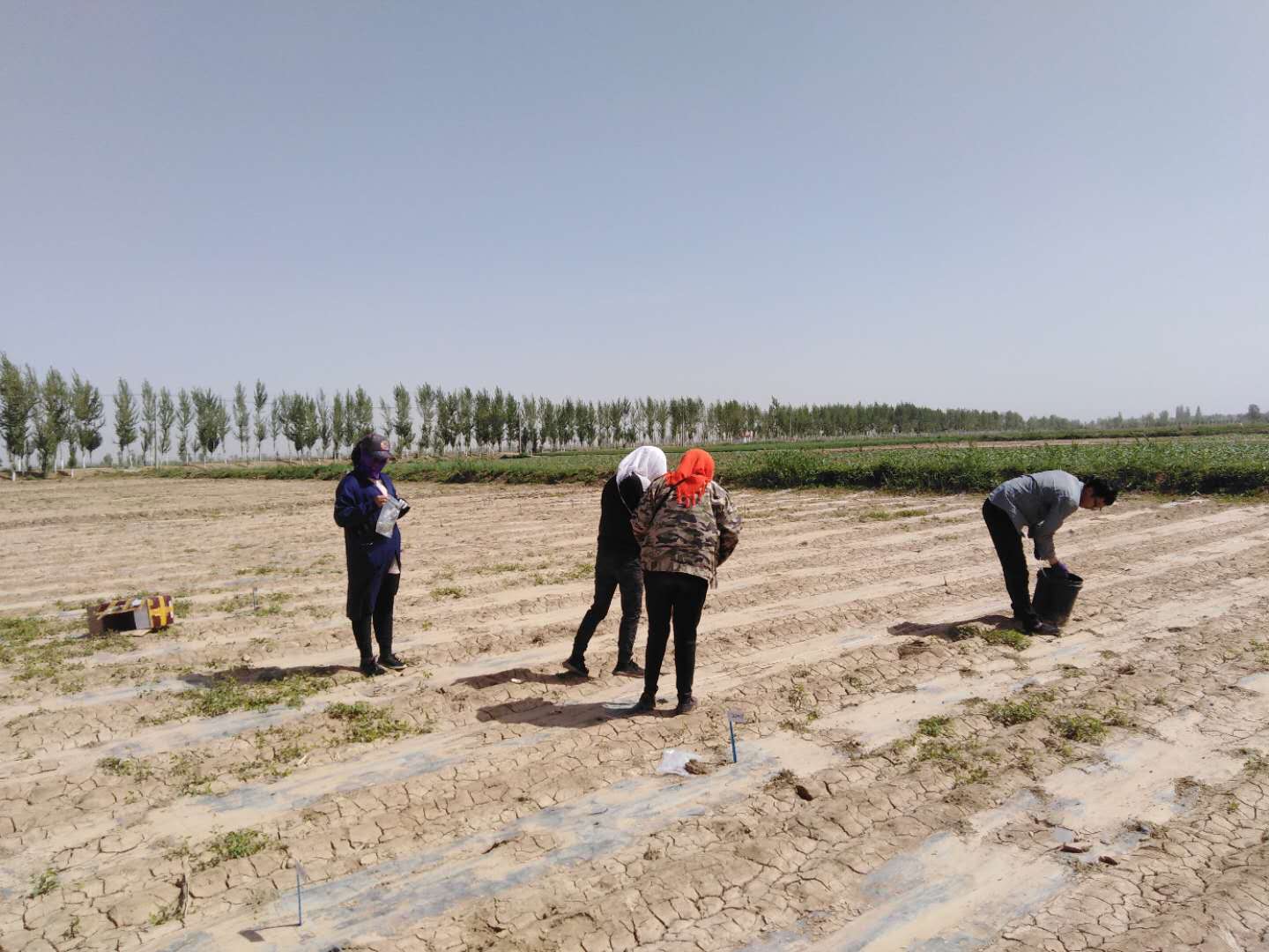 6月5日-6月6日巴彥淖爾市種子管理站品種管理科全體科技人員到杭錦后旗頭道橋鎮(zhèn)聯(lián)增村對食用向日葵登記品種驗證試驗的40個品種進行播種。播種根據(jù)最適播種密度制定田間種植方案,采用劃線等行距人工點播的方式進行播種。