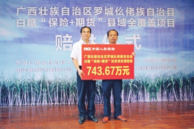 在羅城,和廖韋東一樣拿到保險(xiǎn)理賠款的蔗農(nóng)共有6164戶,總賠付額達(dá)743.67萬元,覆蓋甘蔗種植面積13萬余畝,對(duì)應(yīng)白糖現(xiàn)貨量約6萬噸。這一切得益于鄭州商品交易所第一個(gè)縣域全覆蓋項(xiàng)目——白糖“保險(xiǎn)+期貨”縣域全覆蓋試點(diǎn)項(xiàng)目。