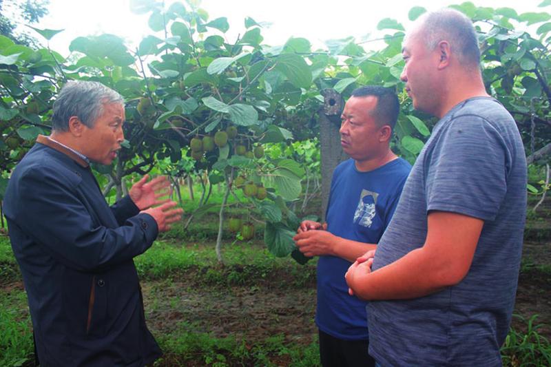 王聯(lián)武(右二)一行查看獼猴桃長勢情況