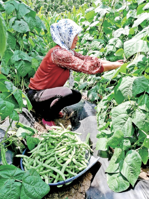 如今,威寧推廣種植的早熟架豆“超級(jí)九粒白”已陸續(xù)采摘上市,市場(chǎng)銷售情況良好。據(jù)了解,早熟架豆“超級(jí)九粒白”目前市場(chǎng)收購價(jià)每公斤3.6元左右,平均畝產(chǎn)超過2500公斤,畝收入有望突破9000元。圖為一村民正在采摘早熟架豆。