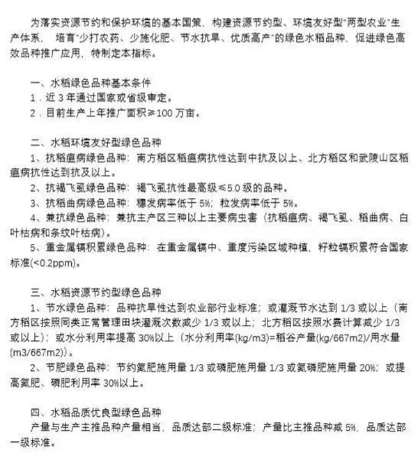 19年5月,農(nóng)業(yè)農(nóng)村部種業(yè)管理司下發(fā)水稻等四大作物綠色品種指標(biāo)體系,旨在四大主糧作物品種審定制度的基礎(chǔ)上,每年將根據(jù)綠色品種指標(biāo)體系,遴選出一批綠色優(yōu)質(zhì)品種,推動(dòng)品種更新?lián)Q代。