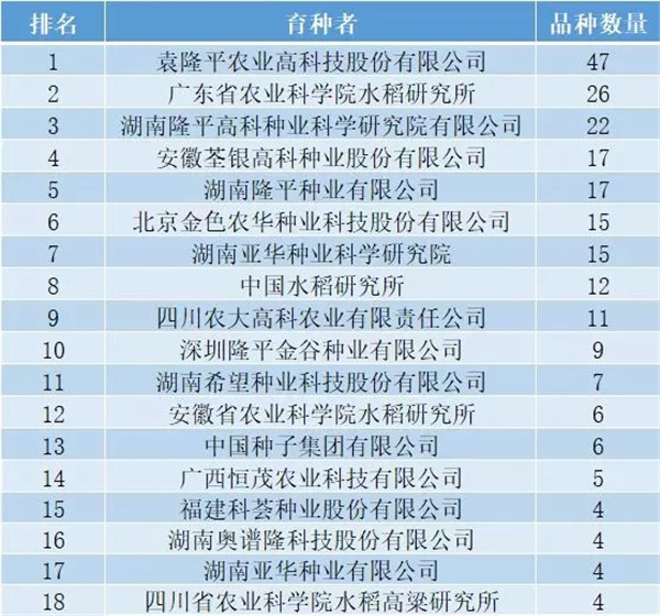 2018年國(guó)審水稻品種數(shù)量排行