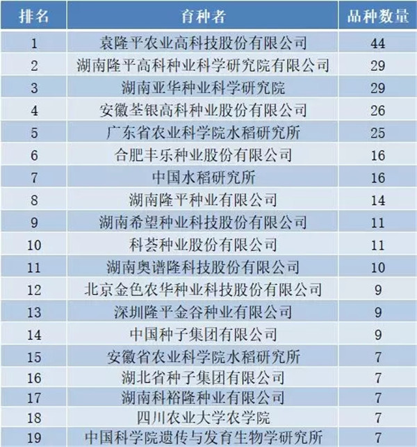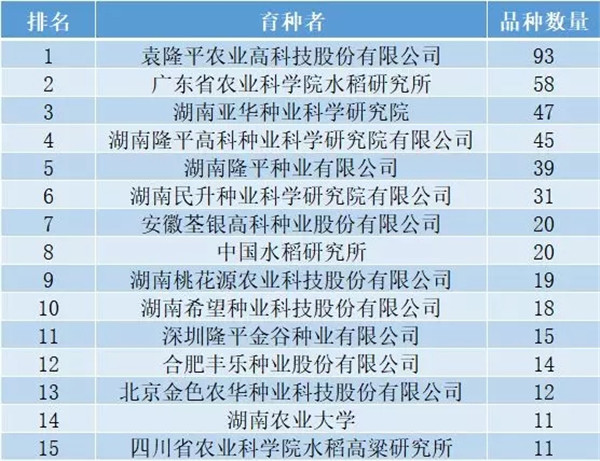 其中,2019年初審名單中,隆平高科系繼續(xù)一枝獨(dú)秀,自主選育和與科研單位合作選育水稻新品種131個(gè),占總品種數(shù)的35.2%,是此次通過(guò)初審品種最多的選育單位。