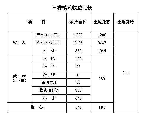 結(jié)論:在種植品種相同條件下,實行土地托管模式,農(nóng)戶收益明顯高于農(nóng)戶自種和土地流轉(zhuǎn)兩種模式。