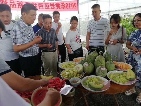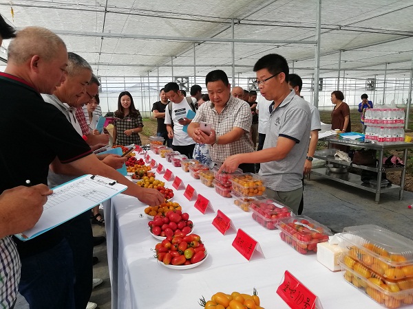 在隨后的品鑒會(huì)上,與會(huì)代表根據(jù)西甜瓜、番茄新品種的田間表現(xiàn)、食味、肉色、口感等要素進(jìn)行了品鑒。