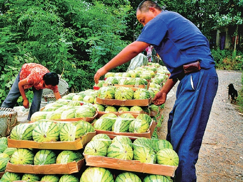 仲夏,正是西瓜上市的好時(shí)節(jié),瓜農(nóng)們搶抓晴好天氣,采摘、分揀、裝車、銷售,田間地頭處處呈現(xiàn)西瓜豐收的喜人場(chǎng)景。在安徽省廬江縣同大鎮(zhèn)新來家庭農(nóng)場(chǎng)流轉(zhuǎn)的180畝西瓜地里,新品種“皇后1號(hào)”黃瓤西瓜格外惹人喜愛。“皇后1號(hào)”以每公斤6~8元直接銷往合肥市多家超市,讓市民品嘗到新品種黃瓤西瓜的甜爽。