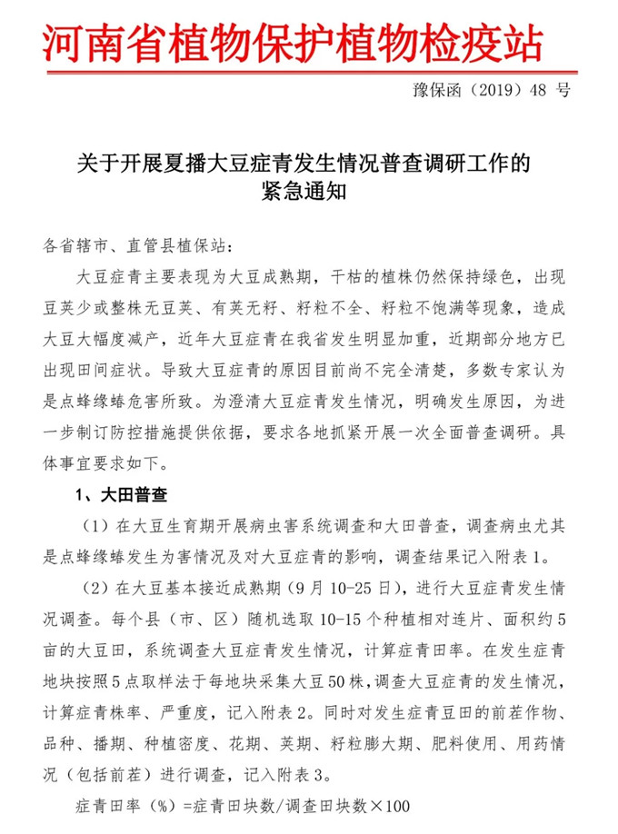 大豆癥青已局部發(fā)生,河南發(fā)緊急通知普查情況