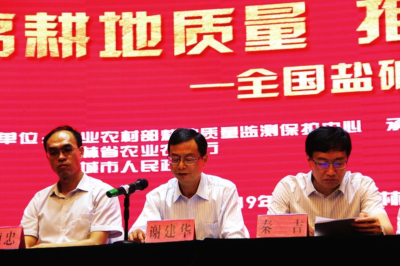 農(nóng)業(yè)農(nóng)村部耕地質(zhì)量檢測保護(hù)中心主任謝建華(中)作總結(jié)發(fā)言