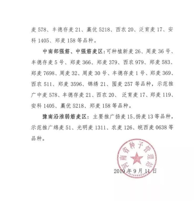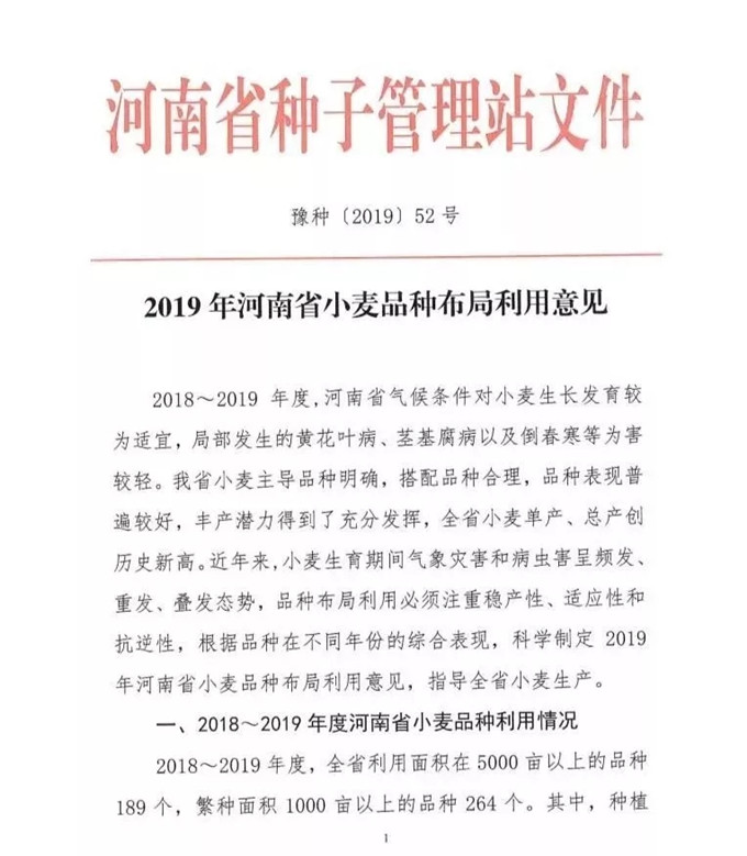 2019年河南省小麥品種布局意見出爐!看你哪里適合種啥品種?
