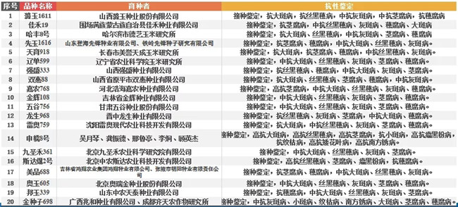 ▽2019年國(guó)家審定綠色玉米品種20個(gè)