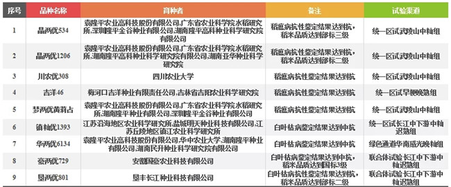 ▽2019年國(guó)家審定綠色水稻品種9個(gè)