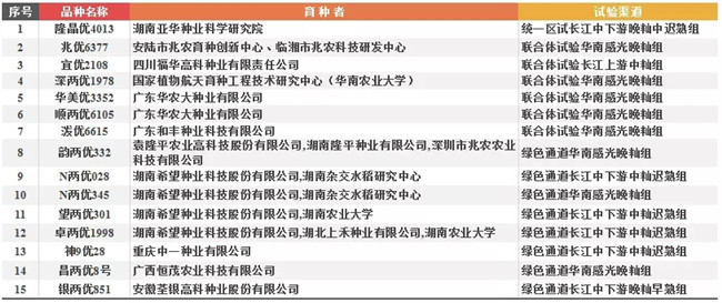 ▽2019年國(guó)家審定部標(biāo)優(yōu)質(zhì)一級(jí)水稻品種15個(gè)