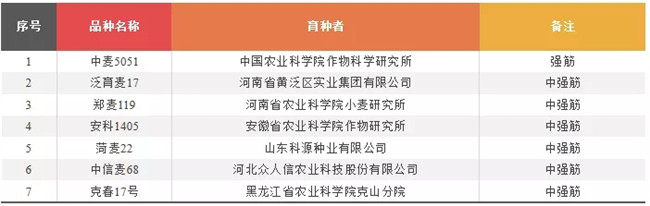 ▽2019年國(guó)家審定強(qiáng)筋中強(qiáng)筋小麥品種7個(gè)