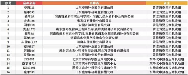 ▽2019年國(guó)家審定適宜籽粒機(jī)收玉米品種16個(gè)