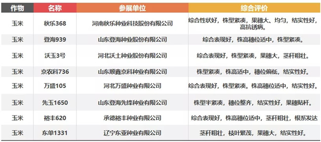 ▽2019年玉米展示評(píng)價(jià)表現(xiàn)優(yōu)良品種黃淮海區(qū) 80個(gè)(部分)