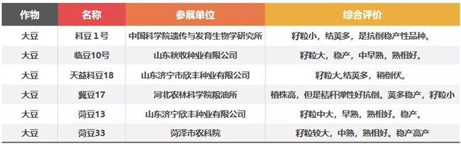 ▽2019年大豆展示評(píng)價(jià)表現(xiàn)優(yōu)良品種黃淮區(qū) 25個(gè)(部分)
