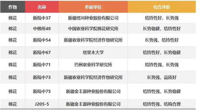 ▽2019年棉花展示評(píng)價(jià)表現(xiàn)優(yōu)良品種8個(gè)