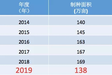 面積大幅下調(diào)、總產(chǎn)預(yù)計(jì)減少5000萬(wàn)公斤。2019年制種面積為138萬(wàn)畝,比去年減少31萬(wàn)畝,減幅18%。