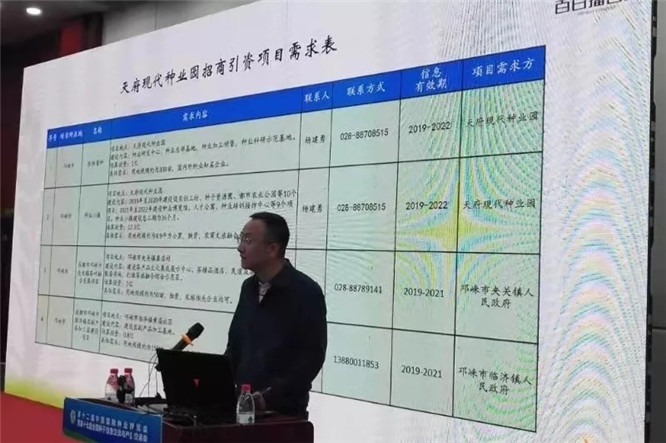 全國農(nóng)業(yè)技術(shù)推廣服務(wù)中心、農(nóng)業(yè)農(nóng)村部農(nóng)業(yè)貿(mào)易促進(jìn)中心、中國種子協(xié)會、山東省農(nóng)業(yè)農(nóng)村廳主辦的第十二屆中國國際種業(yè)博覽會暨第十七屆全國種子信息交流與產(chǎn)品交易會(全國種子雙交會)10月30至31日在山東國際會展中心舉辦。作為此次大會的重要組成部分,種業(yè)高峰論壇與信息發(fā)布會于30日下午召開,邛崍市就邛崍市情、現(xiàn)代農(nóng)業(yè)發(fā)展?fàn)顩r及天府現(xiàn)代種業(yè)園發(fā)展建設(shè)推進(jìn)情況、產(chǎn)業(yè)項目招引等情況作推介交流發(fā)言。會上還包裝推出一些擬對外投資項目,目前已收集推出生物育種、種業(yè)小鎮(zhèn)等項目4個,總投資22.1億元。各省(區(qū)、市)種子站代表,各省種子協(xié)會(學(xué)會)、種子企業(yè)、種子經(jīng)銷商等參展參會代表等100余家參加論壇。