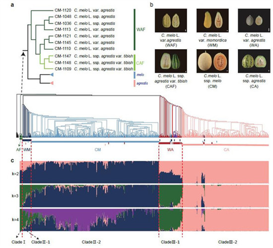 中國農(nóng)科院鄭州果樹研究所徐永陽研究員介紹,其所在團(tuán)隊聯(lián)合中國農(nóng)科院深圳農(nóng)業(yè)基因組研究所、西班牙巴塞羅那基因組中心及中國農(nóng)科院蔬菜花卉研究所、青島農(nóng)業(yè)大學(xué)、中國農(nóng)業(yè)大學(xué)、美國康奈爾大學(xué)、法國農(nóng)業(yè)科學(xué)院等19個國內(nèi)外科研機(jī)構(gòu),歷時5年,共同構(gòu)建了世界第一個甜瓜全基因組變異圖譜,首次系統(tǒng)闡釋了甜瓜的復(fù)雜馴化歷史及重要農(nóng)藝性狀形成的遺傳基礎(chǔ)。