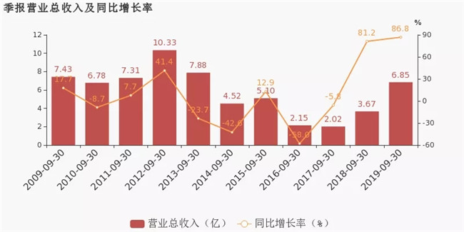 敦煌種業(yè)近日披露三季報,公司2019年前三季度實現(xiàn)營業(yè)總收入6.8億,同比增長86.8%;歸屬上市公司股東的凈利潤虧損1.10億元,而上年同期虧損1.24億元。