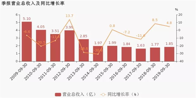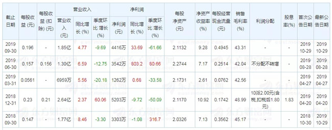 萬向德農近日披露三季報,公司2019年前三季度實現(xiàn)營業(yè)總收入1.9億,同比增長4.8%;歸屬上市公司股東的凈利潤4416萬,同比增長33.7%;每股收益為0.2元。