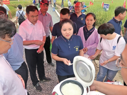 參會(huì)人員現(xiàn)場品嘗新品種米飯的口感。