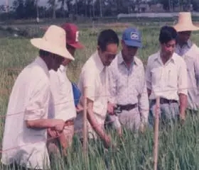1990年袁隆平院士與助手在南繁基地進行試驗