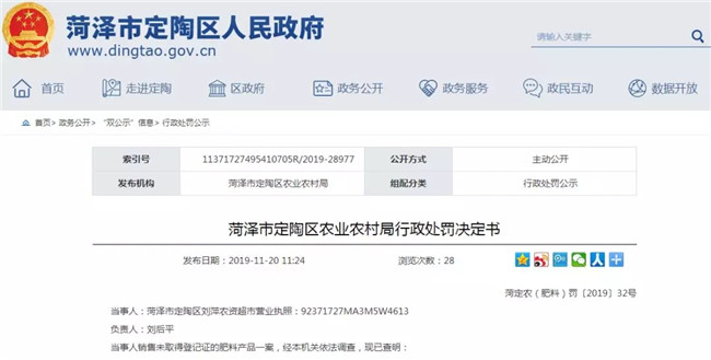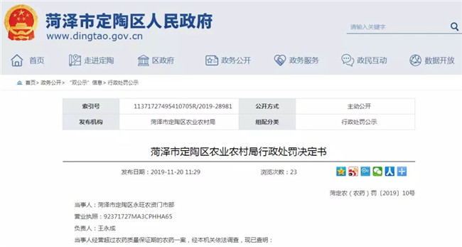 近日,山東省菏澤市定陶區(qū)人民政府連續(xù)發(fā)布8則行政處罰決定書。9-10月期間,菏澤市定陶區(qū)農(nóng)業(yè)農(nóng)村局(以下簡稱“定陶農(nóng)業(yè)農(nóng)村局”)對定陶區(qū)農(nóng)資店例行檢查,發(fā)現(xiàn)農(nóng)資市場存在銷售過期農(nóng)藥、未取得農(nóng)藥經(jīng)營許可經(jīng)營農(nóng)藥、銷售擅自修改標簽內(nèi)容的肥料、種子標簽內(nèi)容不符合《種子法》規(guī)定等不合法現(xiàn)象。根據(jù)相關(guān)法律規(guī)定,定陶農(nóng)業(yè)農(nóng)村局沒收不合格農(nóng)資,并對涉事農(nóng)資店作出2000-5000元不等的罰款。