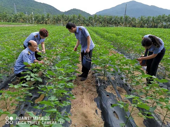 在前期巡查工作的基礎(chǔ)上,三省聯(lián)合巡查組與海南南繁管理局積極做好此次巡查與前期巡查組工作的銜接、對接,以山西、河南、山東省及調(diào)查區(qū)域內(nèi)周邊南繁單位的產(chǎn)地檢疫為重點(diǎn)開展巡查工作。由于南繁單位數(shù)量多,種植地分散,且繁育基地交通條件較差,巡查組經(jīng)常早出晚歸,足跡踏遍了樂東縣、崖州區(qū)、吉陽區(qū)、海棠區(qū)、陵水縣等區(qū)域南繁基地的溝溝渠渠。